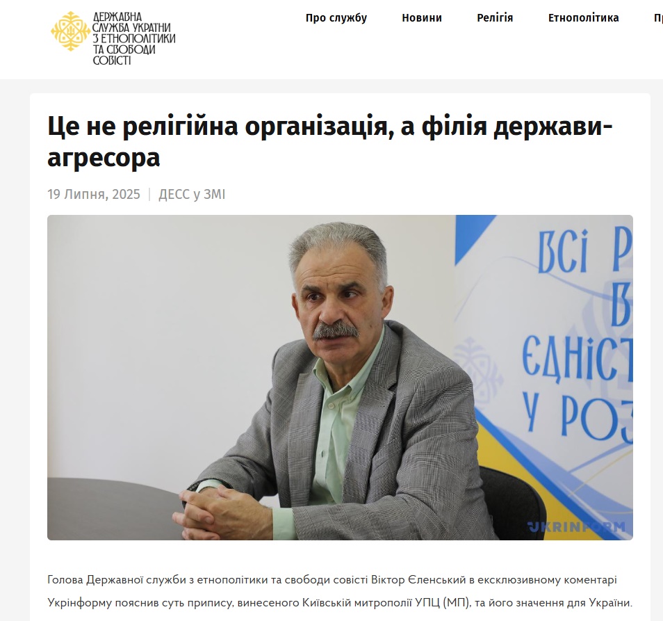 🔴On 19 July 2025, Viktor Yelensky called the UOC “not a religious organization, but a branch of the aggressor state.”
